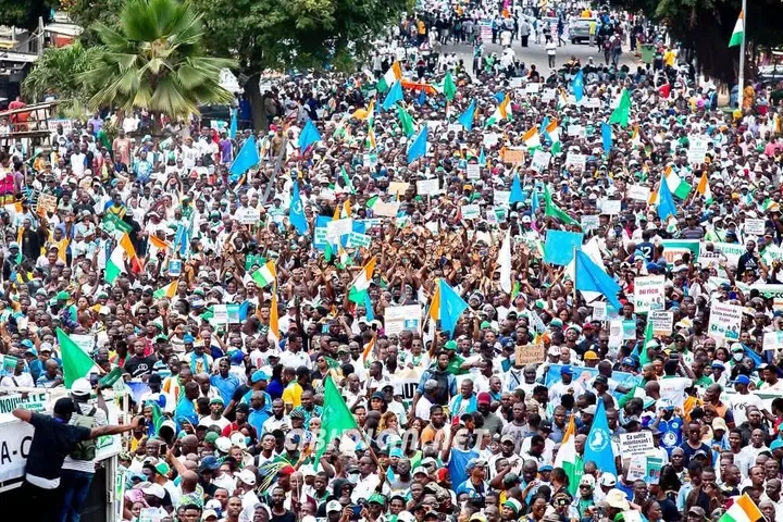 Marchers from the Party of African Peoples – Ivory Coast (PPA-CI) of former president Laurent Gbagbo and the Democratic Party of Ivory Coast (PDCI) led by Tidjane Thiam converged on the main boulevard from Saguidiba to Place Ficgayo in the opposition stronghold of Yopougon. The demonstration was authorised by authorities after a planned protest on August 2 was cancelled due to security forces being redeployed.
